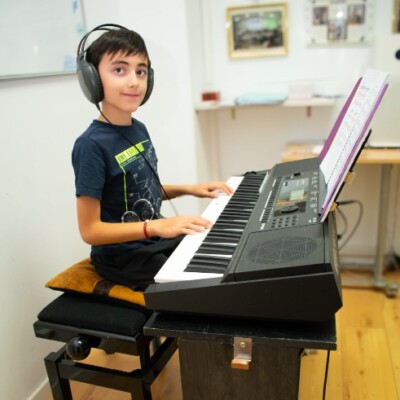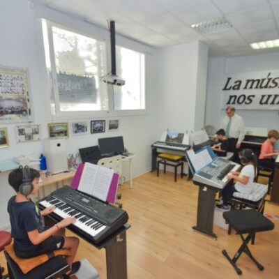 Nuestra aula está equipada con teclados electrónicos y pianos digitales de alta calidad. Cada estancia cuenta con su propio banco y soporte para partituras, proporcionando a los alumnos un espacio cómodo y adaptado para practicar.
