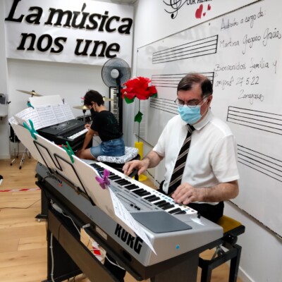 En el corazón del centro está Patricia Viegelmann, encargada de las tareas administrativas y de que todo funcione a la perfección. Douglas Díaz, nuestro experto en piano y teclado electrónico, enseña con pasión y dedicación. Juntos forman un equipo que hace de 5 Octavas un lugar único para aprender y crecer.